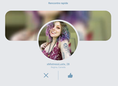 Si vous cliquez sur l’onglet « rencontre rapide », des profils s’afficheront un par un. Pour chacun d’eux, vous pouvez liker ou supprimer et passer au suivant. En cliquant sur la photo, vous arriverez directement sur le profil du membre pour découvrir ses photos et ses informations.