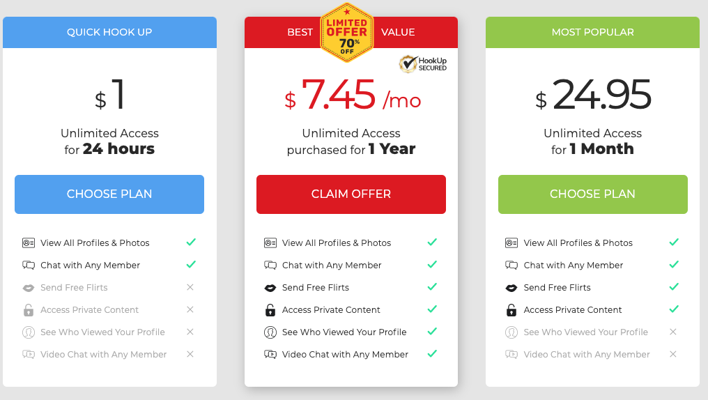 As with most dating sites, designed for casual sex or otherwise, membership is free on YourSecretHookup. However, to really make full use of the site by contacting and meeting other members, a premium subscription is essential. There are three different options available: